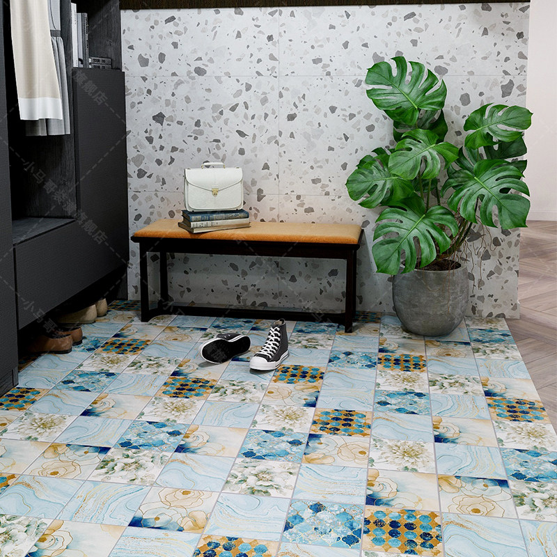 Blue Small Flower Brick Light Extravagant Personality GOLD FLOOR TILES MAKEUP ROOM KITCHEN WALL BRICK NORDIC BALCONY VILLA TOOLING TILE