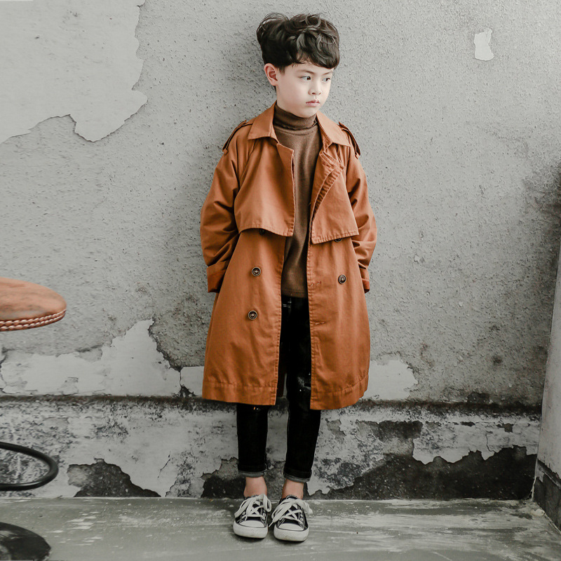 Boy Windcoat Jacket Spring Autumn 2022 New Foreign Sends 12-year-old Child Inn Wind with long version of the wind clothes and autumn clothing