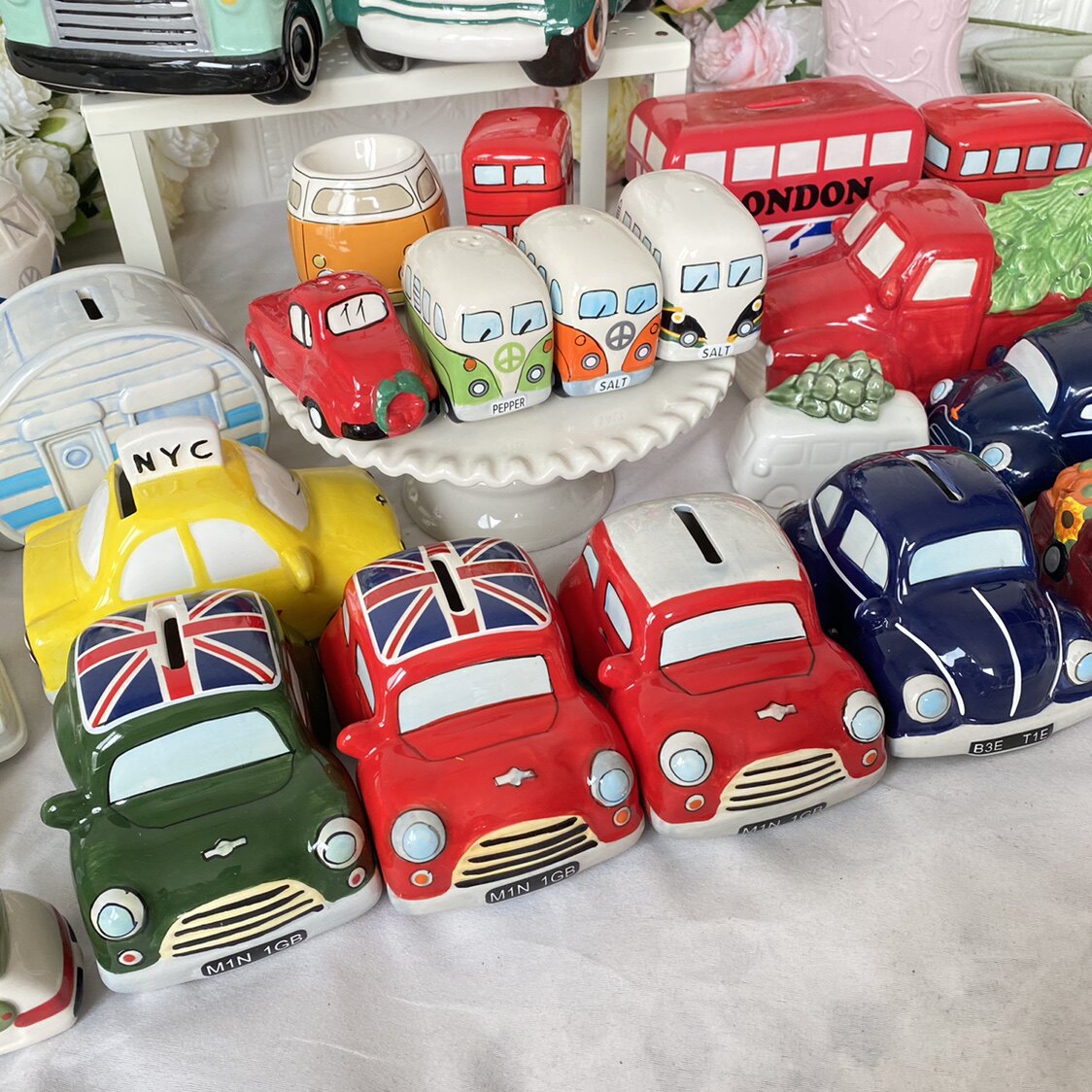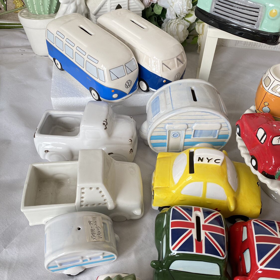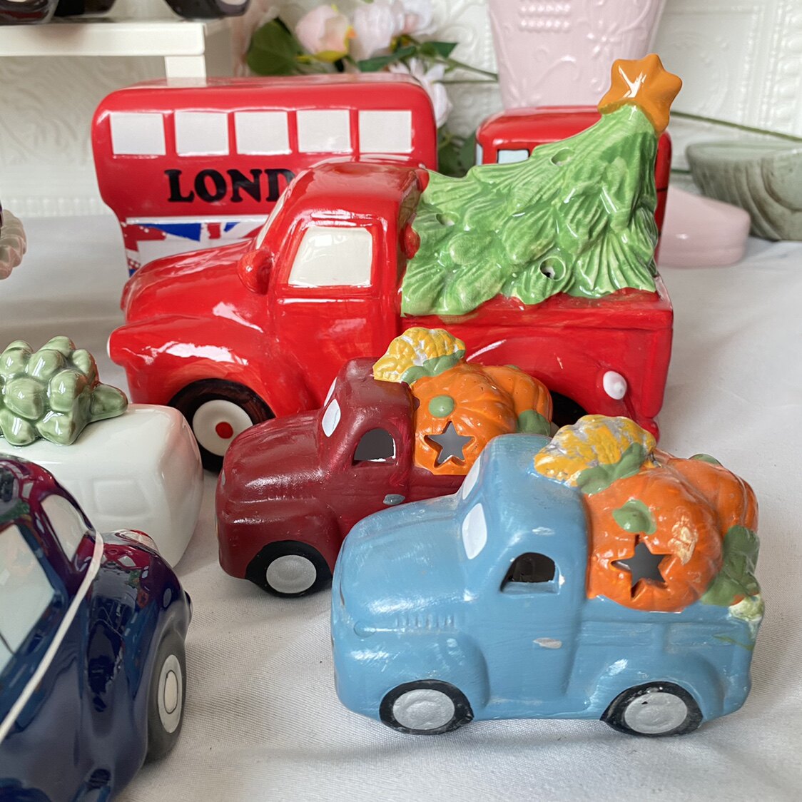 White bus christmas tree ornaments special offer yellow car piggy bank with ice crack small bus powder bottle blue yellow bus egg tray imperfect double decker bus powder bottle double decker bus piggy bank big double decker piggy bank blue blessing