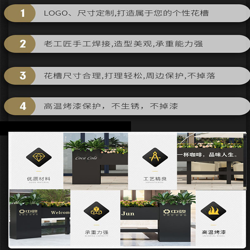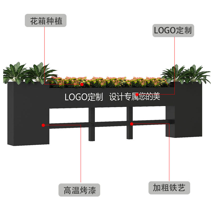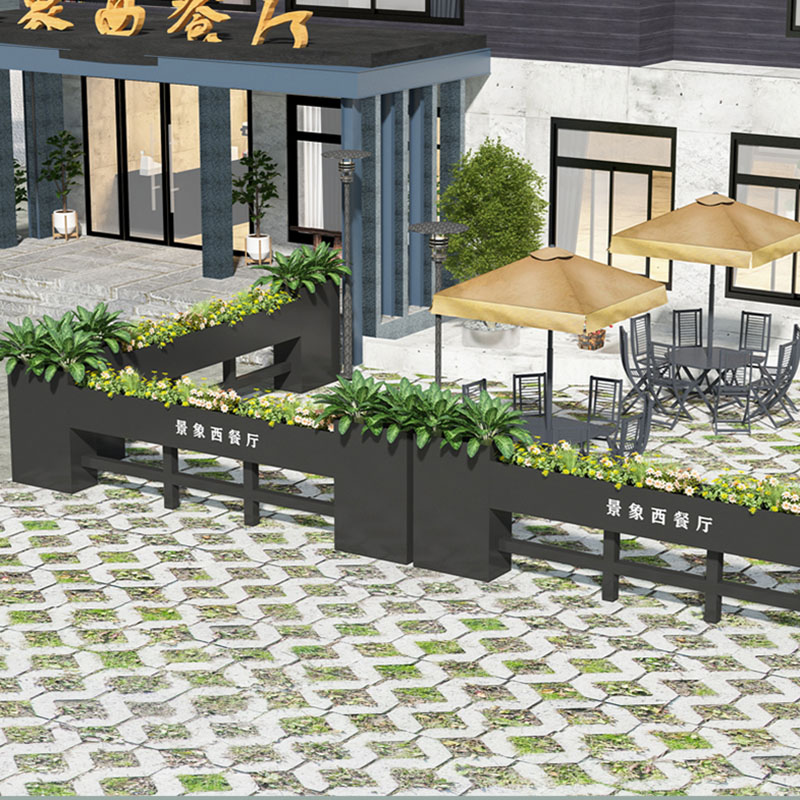 Wrought iron flower box Outdoor municipal scenic area flower bed combination catering milk tea shop outside the fence flower slot frame square fence