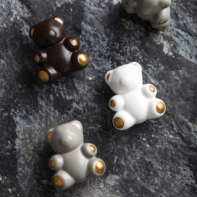 Light luxury cute teddy bear handle children's room custom wardrobe door overall cabinet furniture drawer cartoon single hole handle