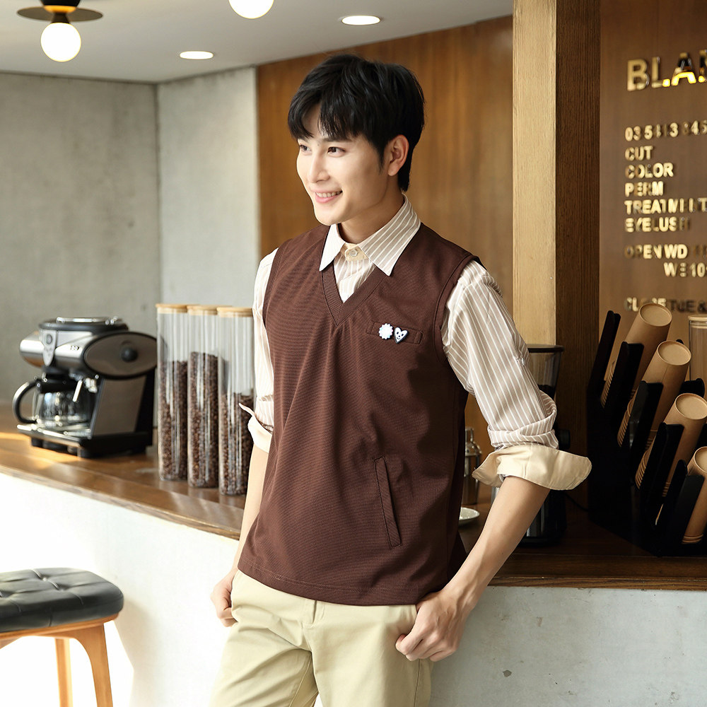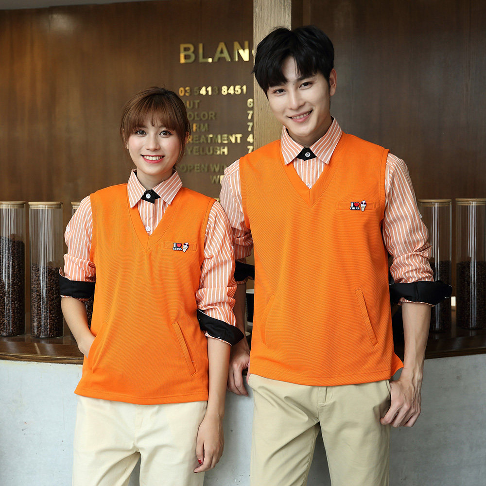 Waiter work clothes Long-sleeved autumn and winter clothing Restaurant hot pot shop knitted vest Hotel front desk work dress female