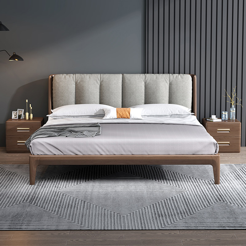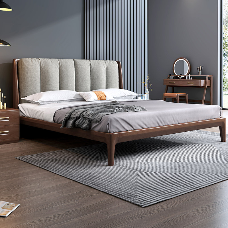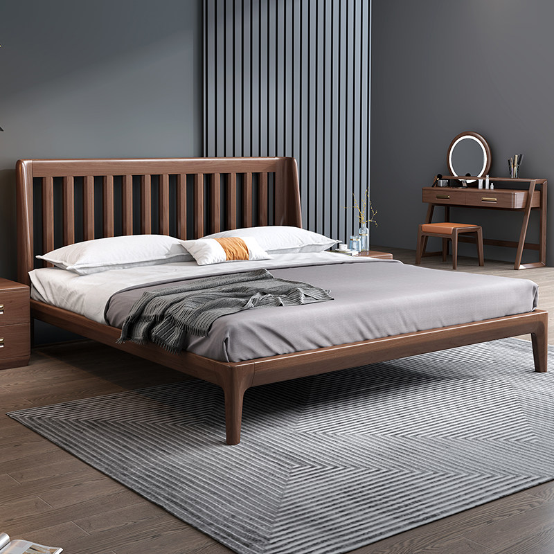 German-style solid wood bed modern minimalist walnut color double bed 1 8 meters 1 5 meters master bedroom furniture wedding bed soft bed