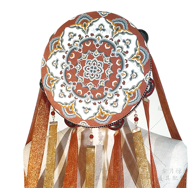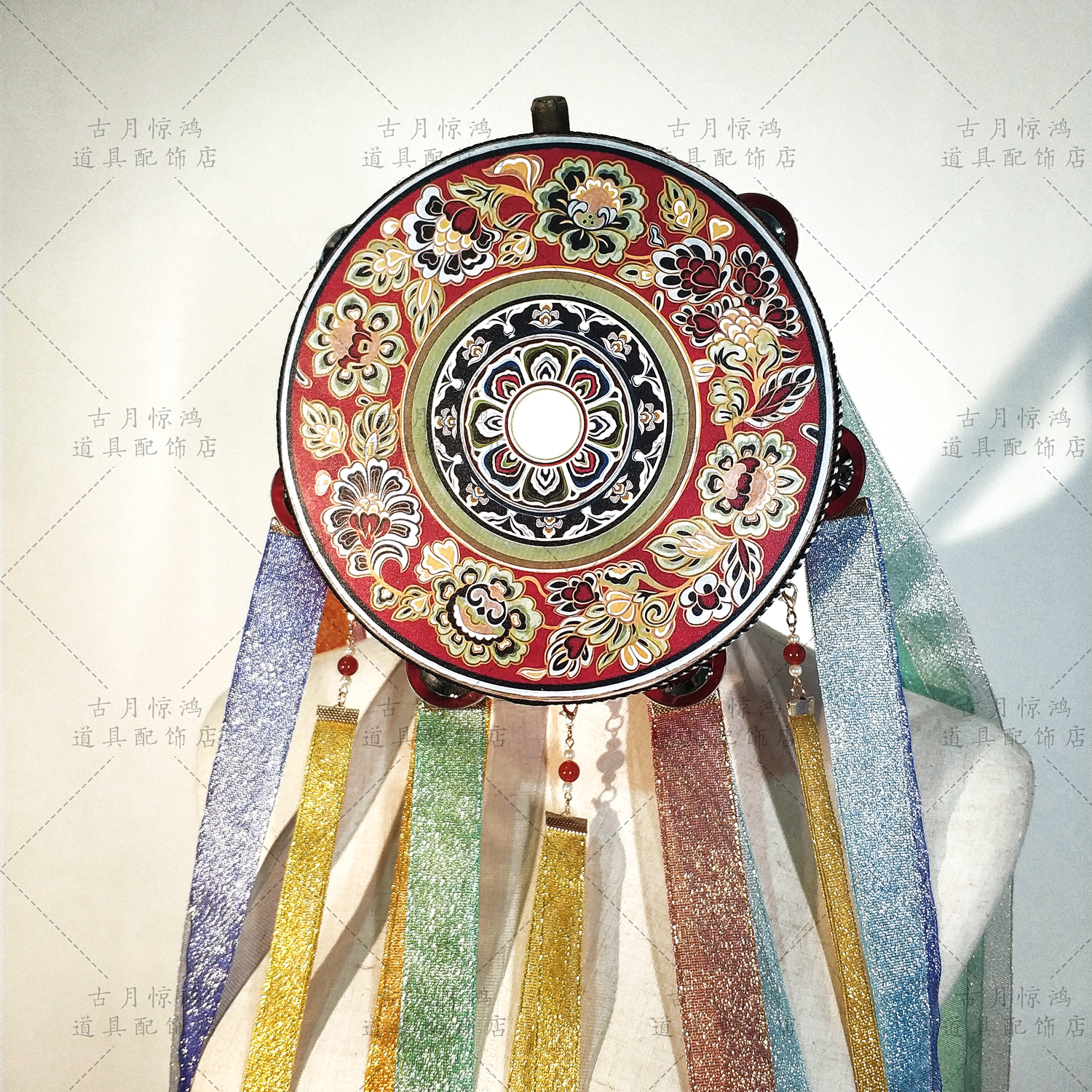 Ancient Moon Jinghong tambourine Hanfu photo location Dance props Tang wind Dunhuang wind multi-color ribbon tambourine tassel