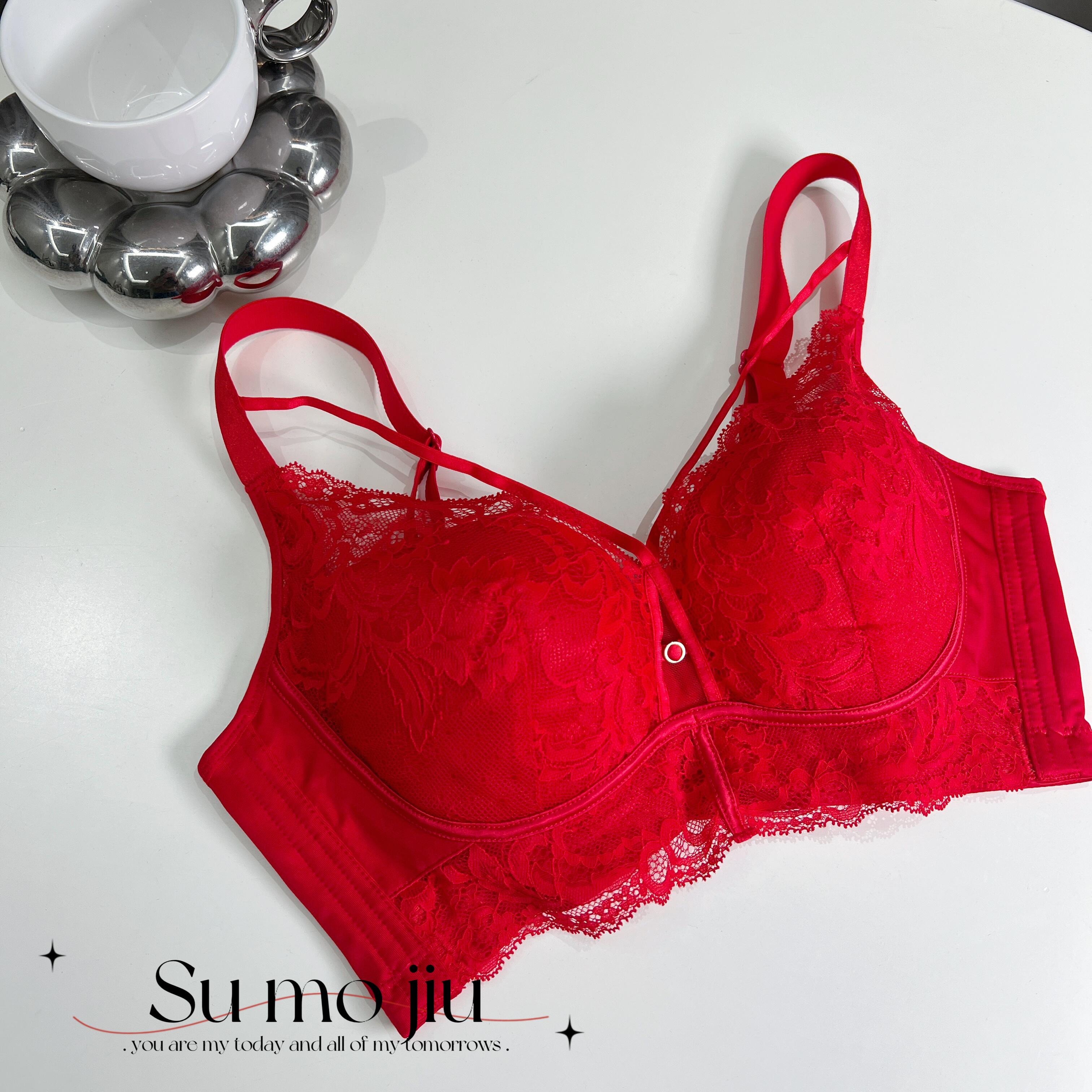 Good wear ~ CHAO good comfortable soft steel ring gathering bras on BC cup adjust lace red underwear