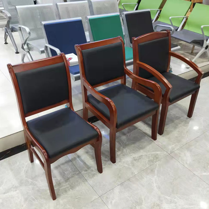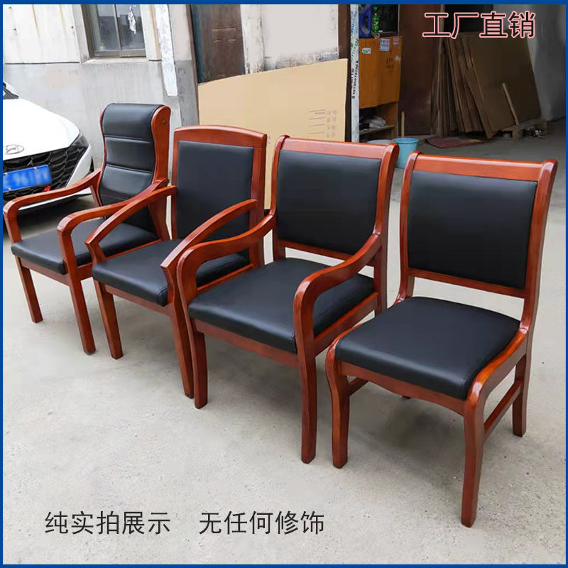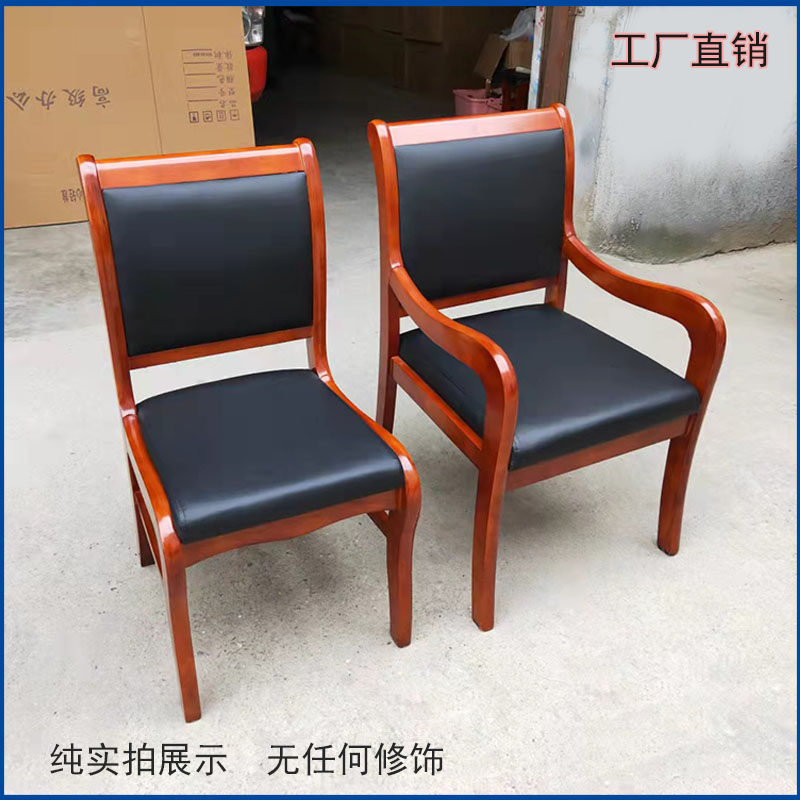 Solid wood office chair conference chair wooden modern chair leather surface backrest four-legged chess room chair mahjong chair for a long time