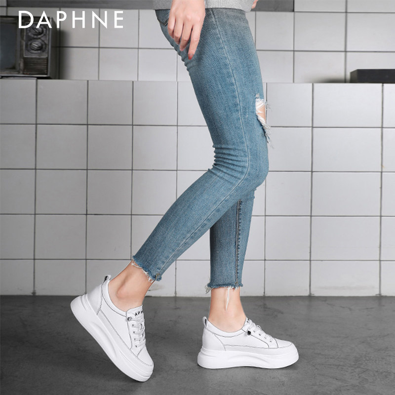 Daphne's real leather white shoes 2023 new flat - floor sports shoes increase plate shoes in spring