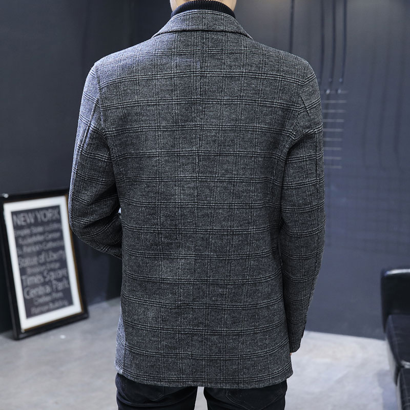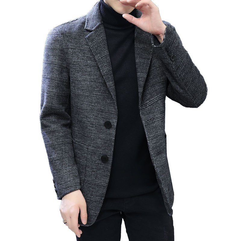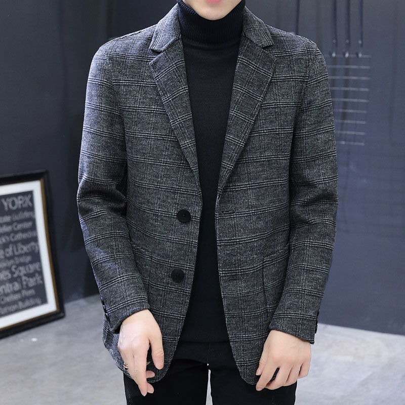 Light and luxurious two-sided suit men's autumn and winter new wool Western suit casual plaid wool big coat short jacket tide