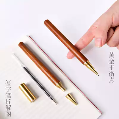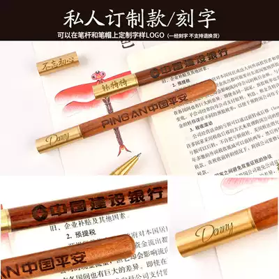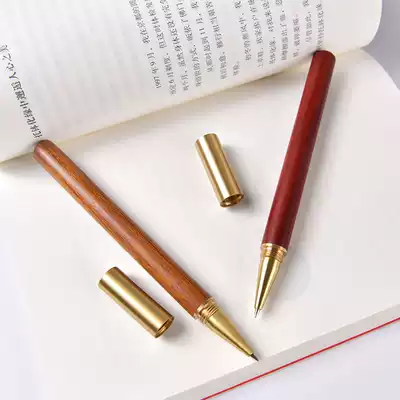 Custom pen logo lettering metal signature pen Brass pen Sandalwood pen Water-based pen black solid wood neutral pen Black pen pear flower wood student notebook pen business high-end men's ancient style gift pen