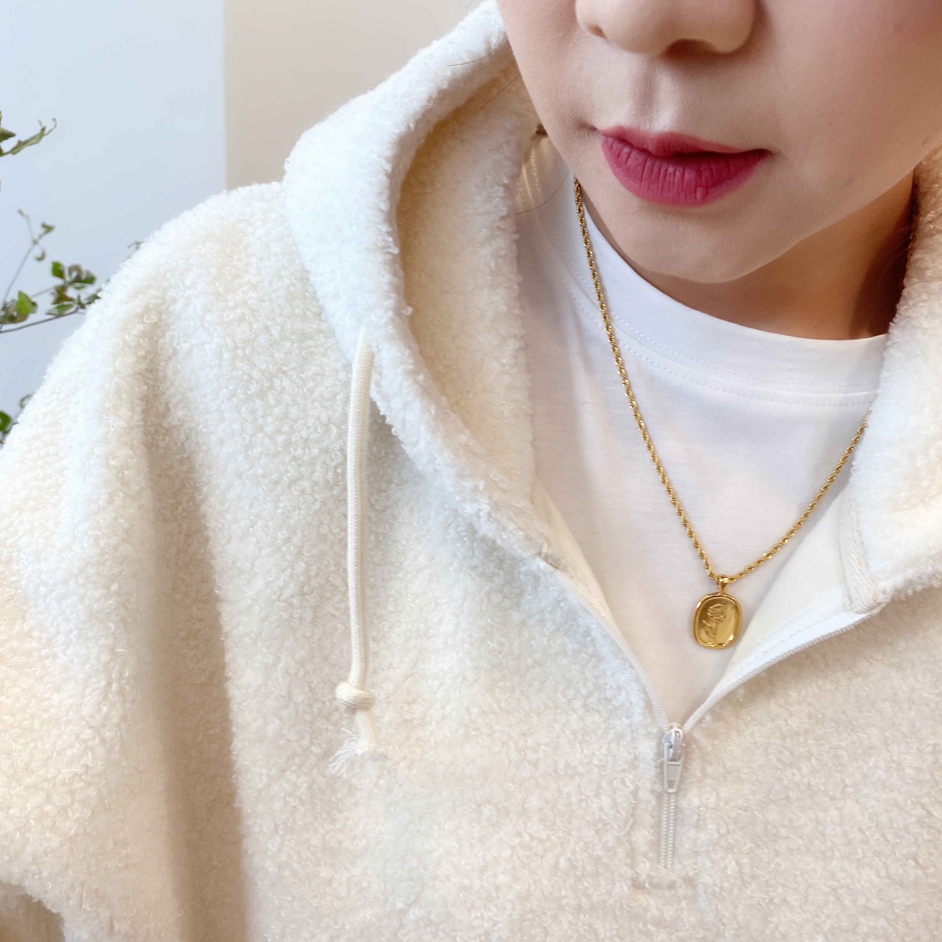 Chen Jier's same style French sunflower embossed pendant necklace twist chain square clavicle chain X907