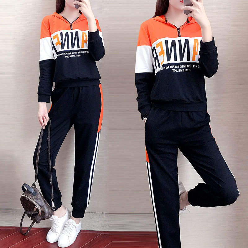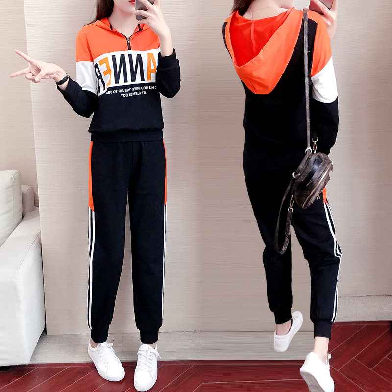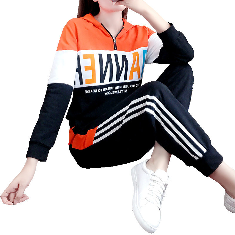 Hong Kong Tidal Wave Casual Sports Suit Women 2020 Chunqiu New Korean version of the Han version Thin Fashion Foreign Wear and Two Sleeves