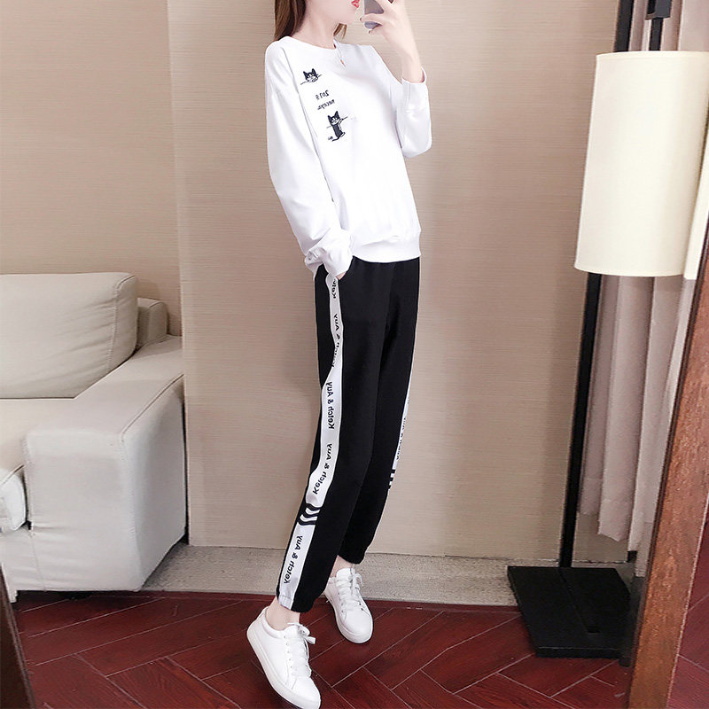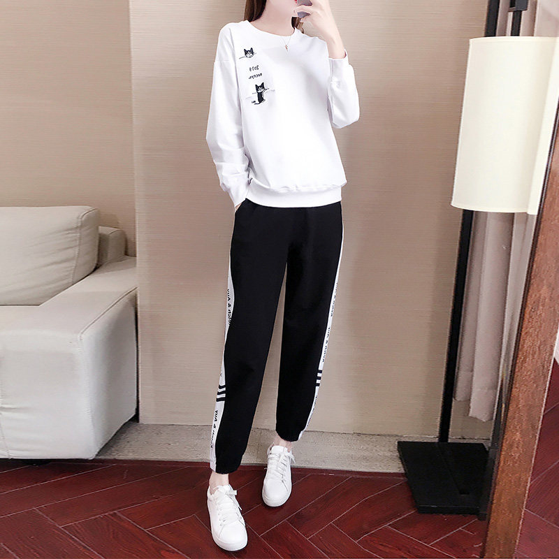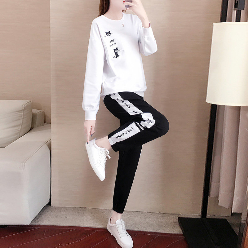 Hong Kong Tide Card 2020 Spring Autumn New Korean Version Fashion Casual Sports Suit Women 100 Hitch Cartoon Sweatshirt Two Sets