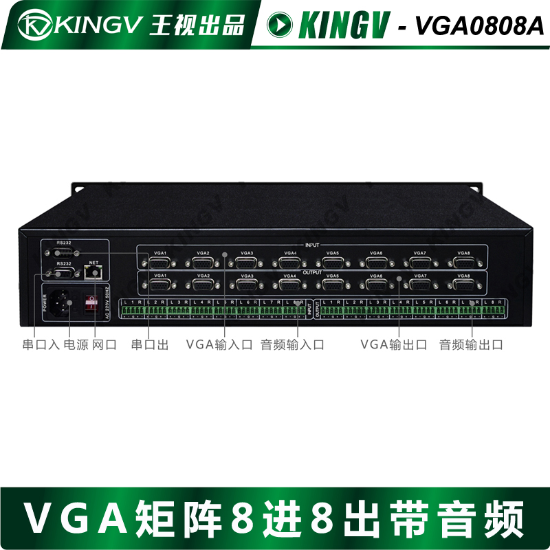 VGA matrix 8 in 8 out with audio and video stereo dual channel at the same time or separate switcher network king video
