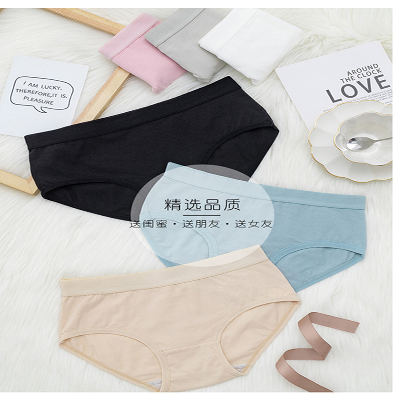 Lady's underwear pure cotton anti-bacterial Bacteriostatic Lift Hip breathable No marks 100% All cotton crotch Japanese Mid Waist Pure color