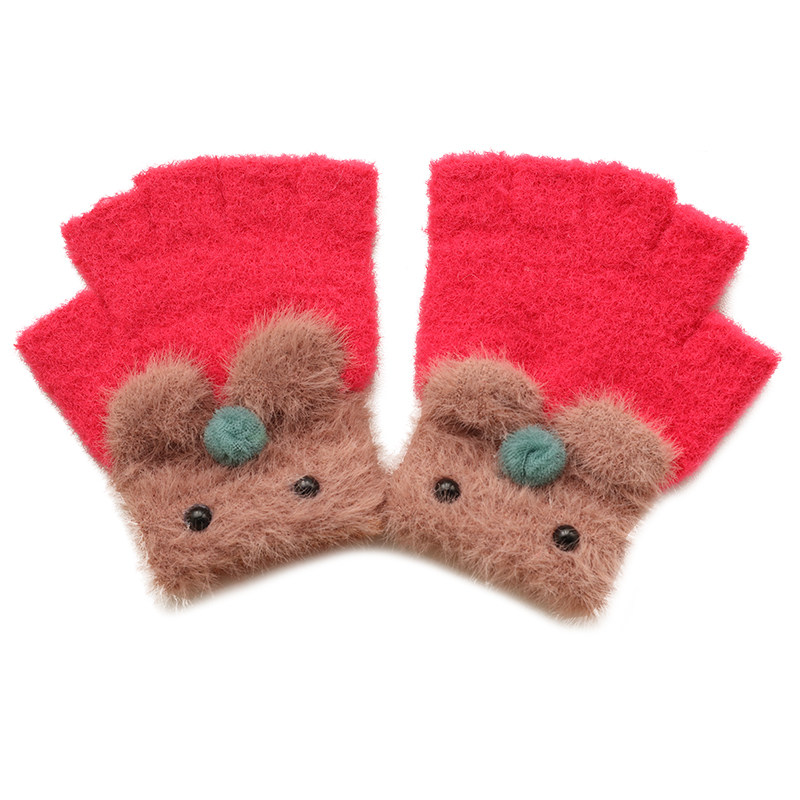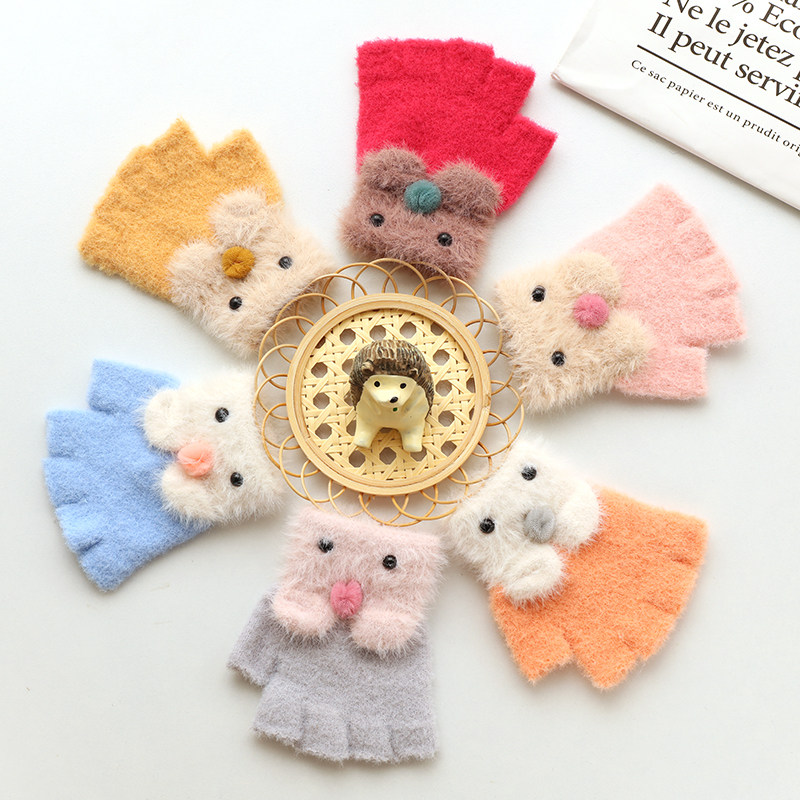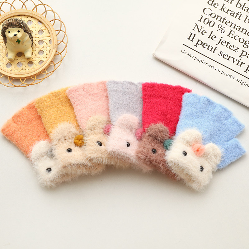 Children's knitted gloves Autumn and Winter Girls Kids Cute Baby 1-2 years old 3 warm Half finger kids Boys thickened