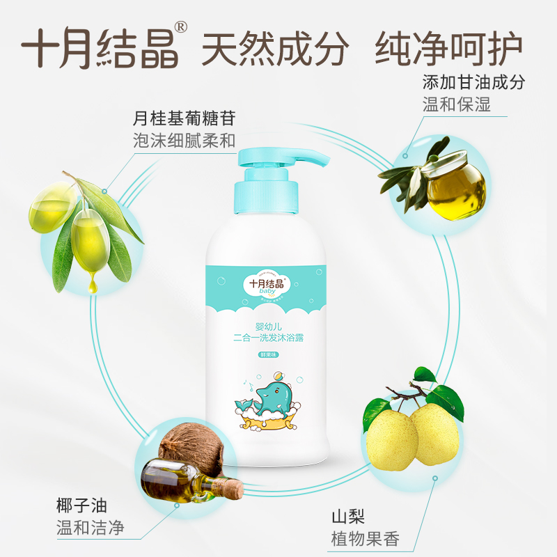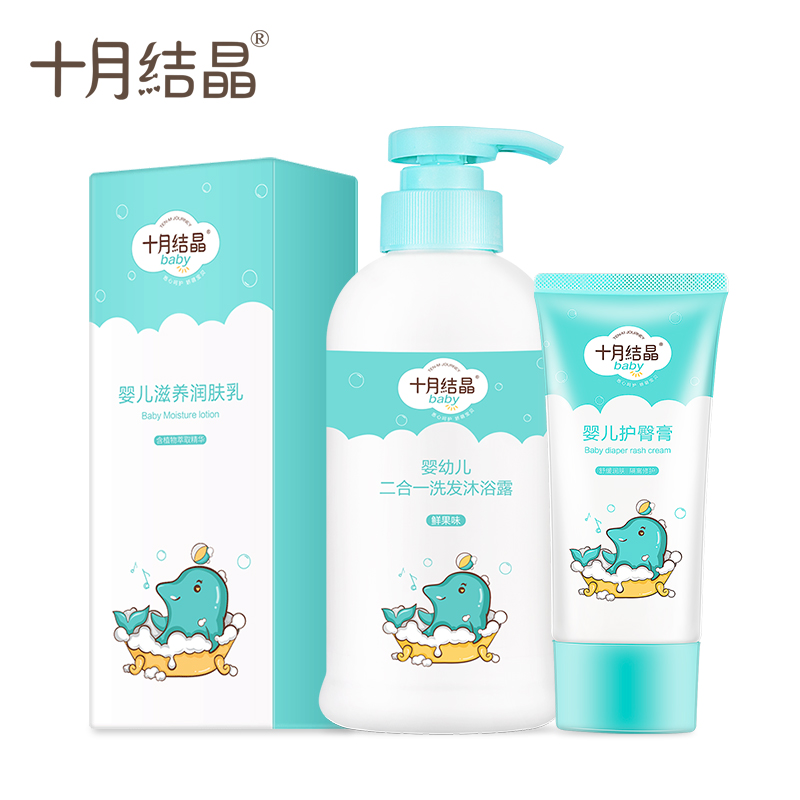 October Crystal baby baby bath Two-in-one shower gel Body lotion Hip cream Bath wash care three-piece set