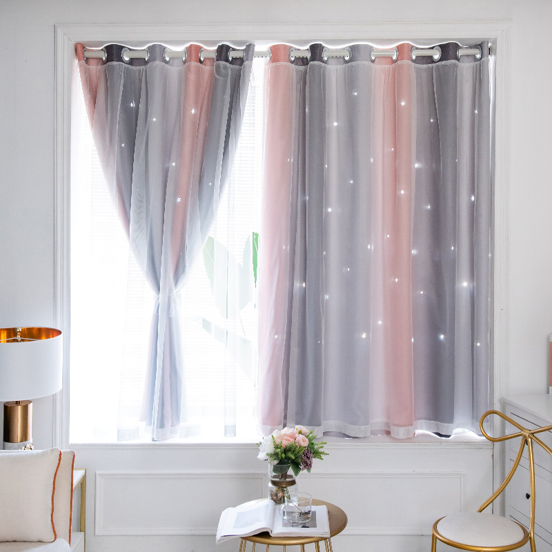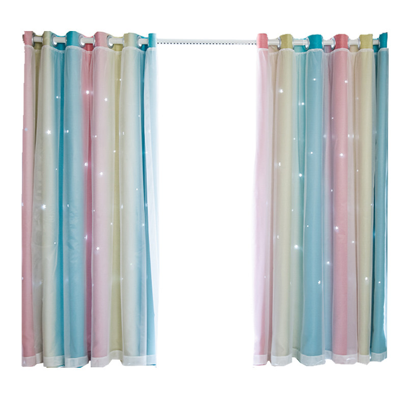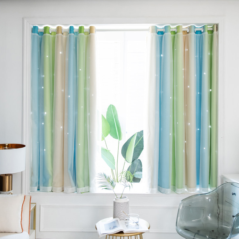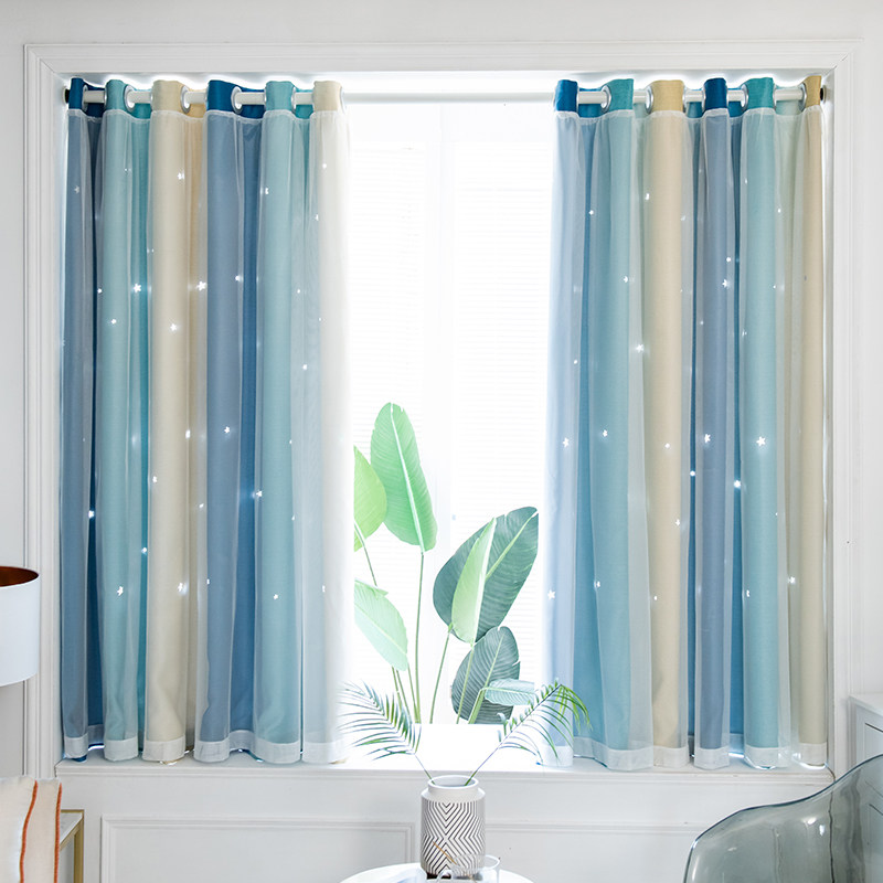 Hole-free installation of blackout curtain cloth Net red telescopic rod hollow star gradient stripe Bedroom shade bay window