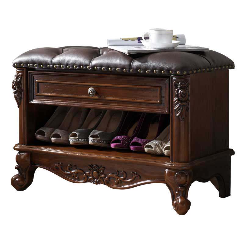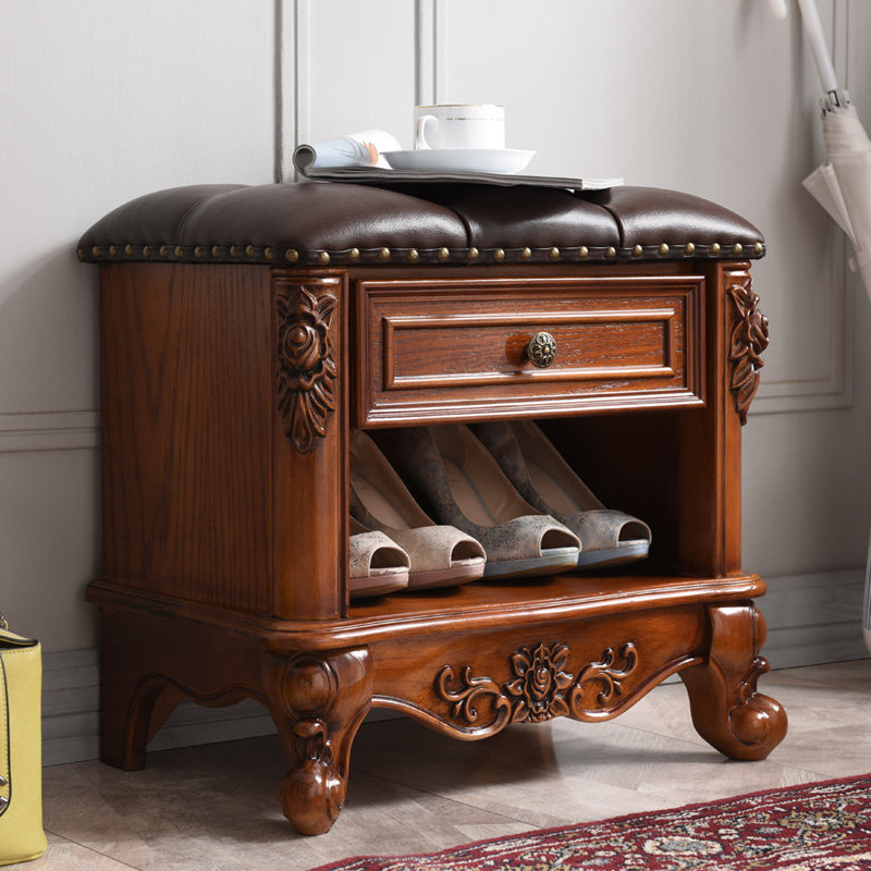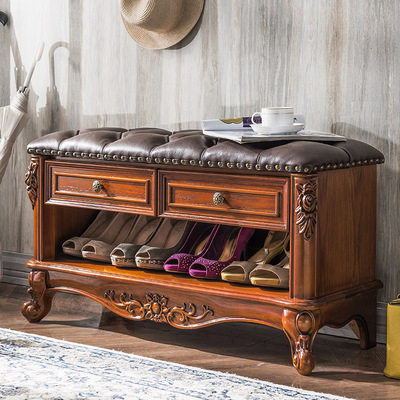 The door can sit in the leather shoe cabinet and the stool is integrated against the wall, all solid wood, breathable, simple shoe change, shoe cabinet