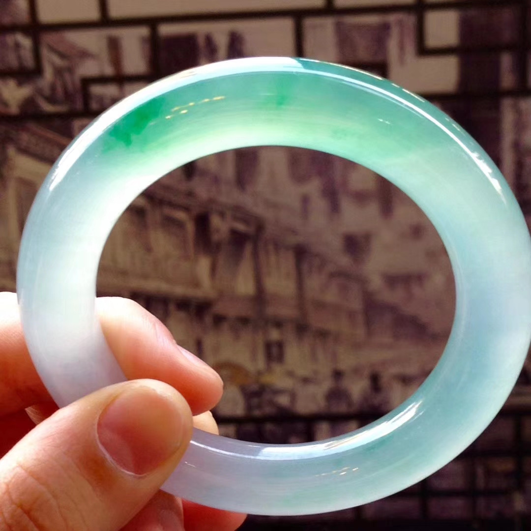 Myanmar ice seed emerald bracelet floating green Guido Jade Bracelet Jade Bracelet Round Bar Jade Bracelet Woman-Taobao