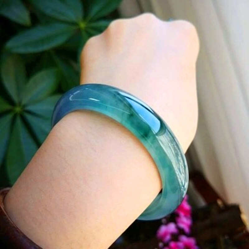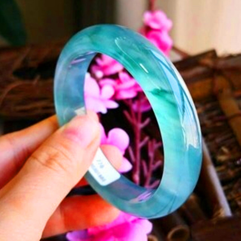 Natural Burmese Jade Jade Bracelet Female Ice Floating Orchid Round Jade Bracelet Jade Bracelet Female Ice Jewelry