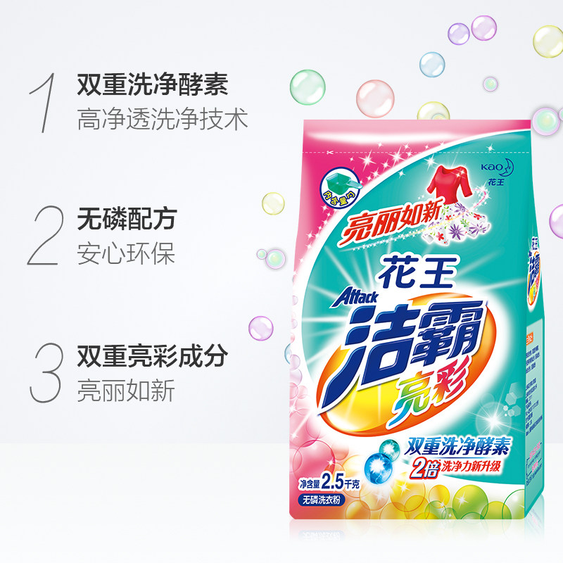 Flowers Wang one spoon of hearty color protection washing powder 2 5kg x 2 bags Family loaded with enzyme to stain without phosphorus machine hand washing can be