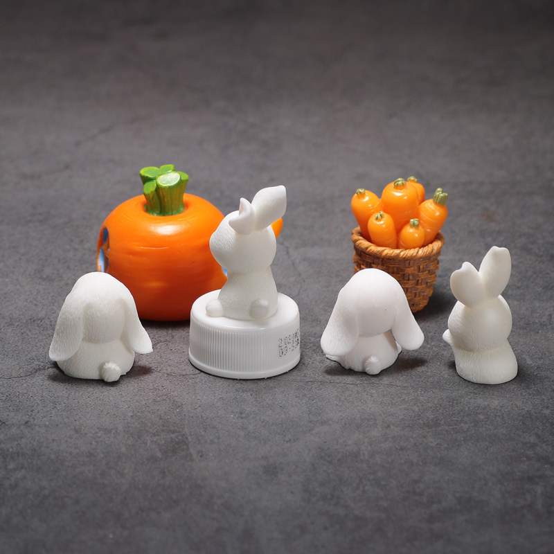 Rabbit doll set of 7 models holding radish beckoning rabbit Squint rabbit Half body Rabbit radish bamboo basket Rabbit house