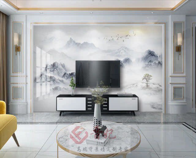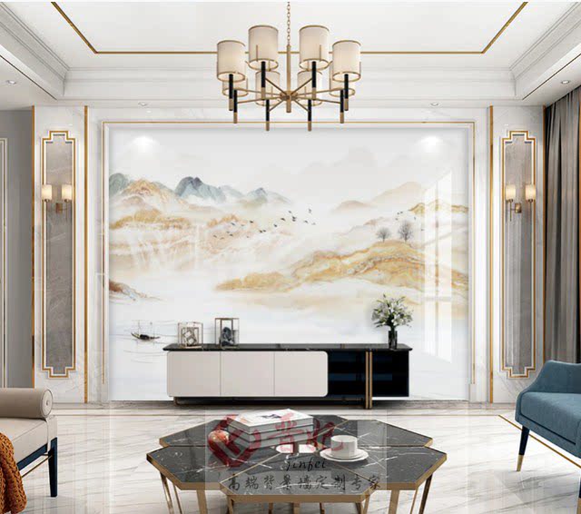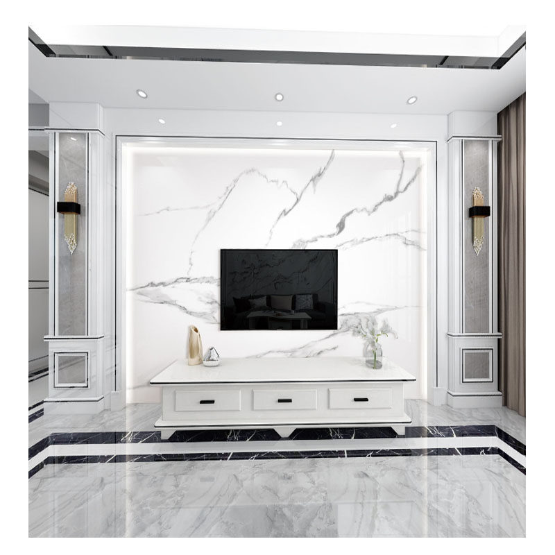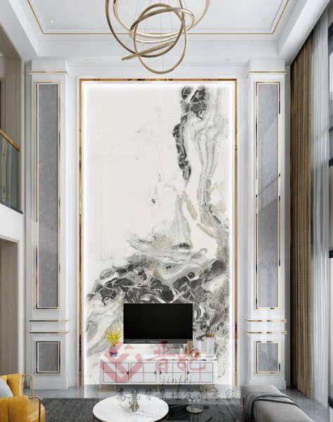 Modern minimalist light luxury wind stone large slab TV background wall new Chinese style marble Roman column video wall tiles