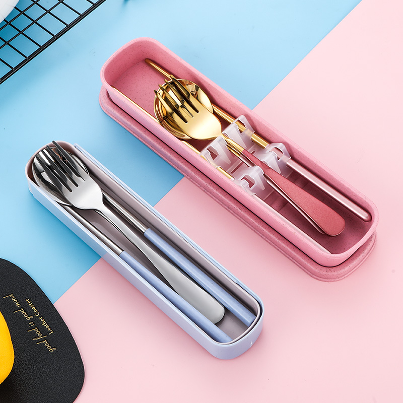 Chopsticks Spoon Suit Stainless Steel Portable Cutlery Children Intake Box Fork Student single outsuit with three sets