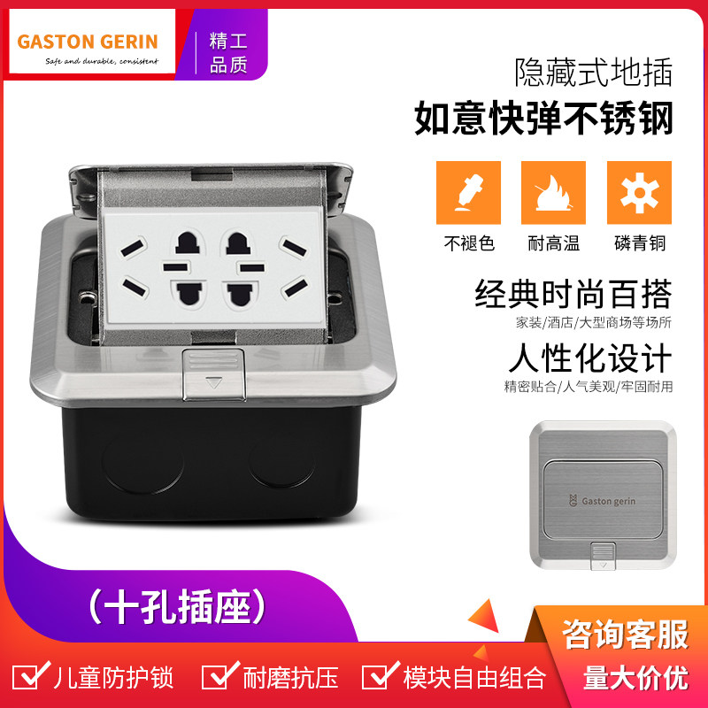 Stainless steel stainless steel stainless steel junction silver socket multifunctional six-hole socket waterproof five-hole floor floor