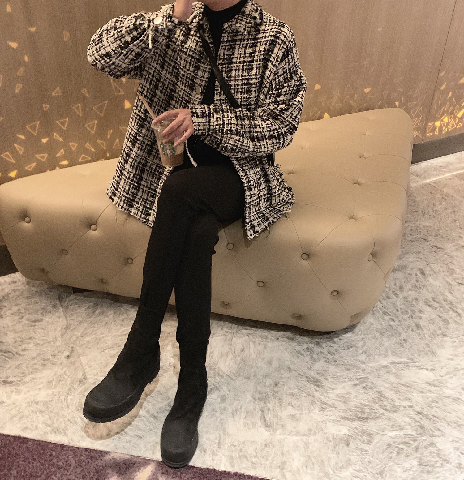Atea With Agu Black & White Fragrant Wind Woven Jacket Men's Spring Autumn Korean Version Trend Handsome CASUAL LOOSE JACKET