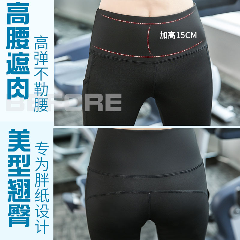 Large size No marks High waist yoga pants women fat mm high elastic tight fit speed dry running sports lifting hip outside wearing gym pants