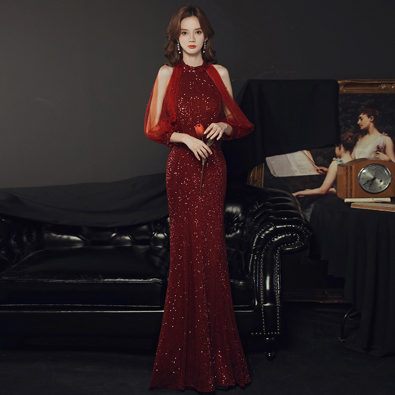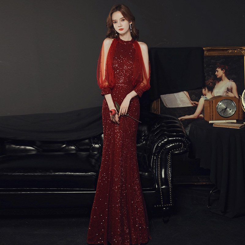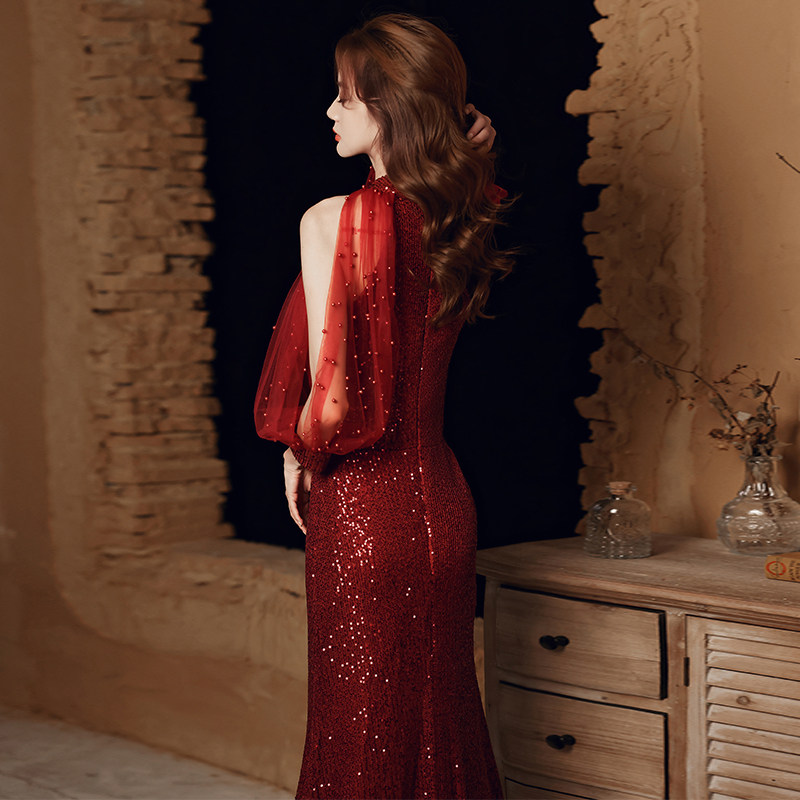 Toast to the bride 2022 new red summer light extravagant high-end sequin wedding banquet evening dress fish tail dresses