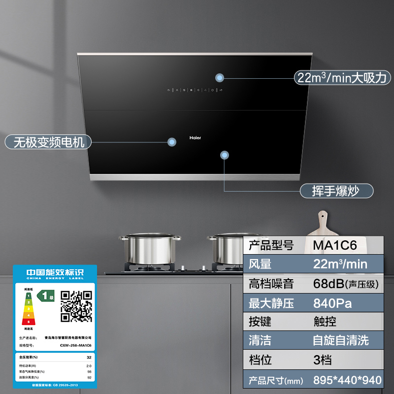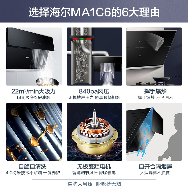 Haier MA1C6 suction ventilator gas stove package gas stove with suit kitchen Official flagship store