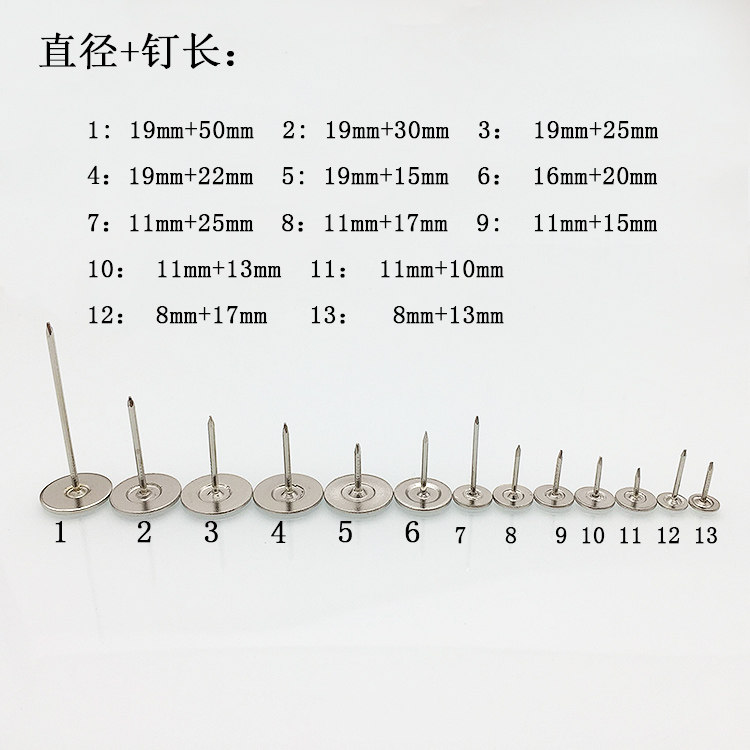 Flat head diameter 8mm * nail length 13mm silver flat head diameter 8mm * nail length 17mm silver color with flat head diameter 11mm * nail length 10mm silver color with flat head