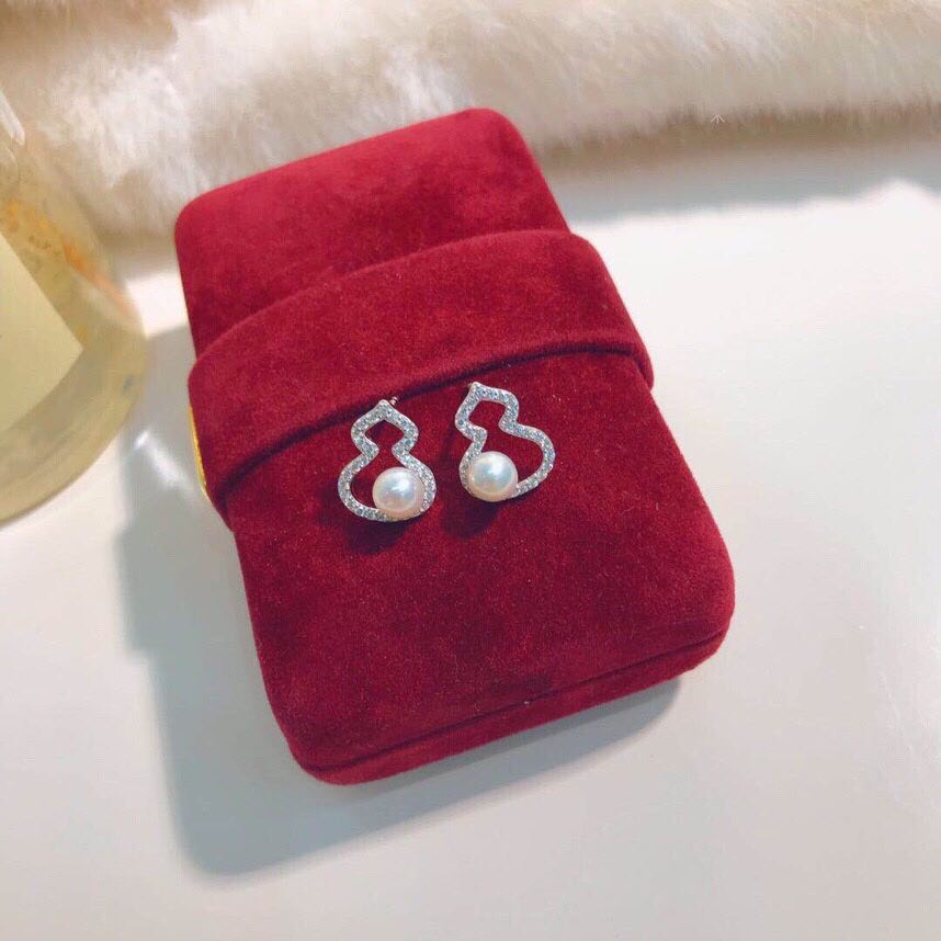 Hong Kong Positive Pure Silver s925 New Pint Tide Fashion Gourd Earrings Earrings Female Tennis Red Temperament 100 hitch a little crowdsourced design