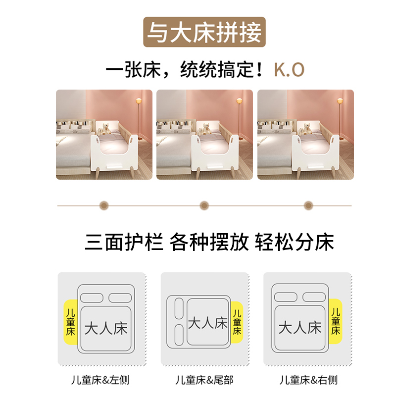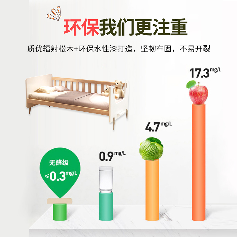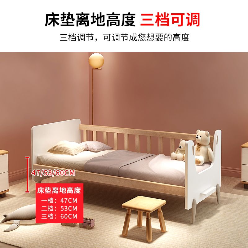 Solid wood children's bed with guardrail small bed baby boy girl princess bed baby single bed widened stitching big bed