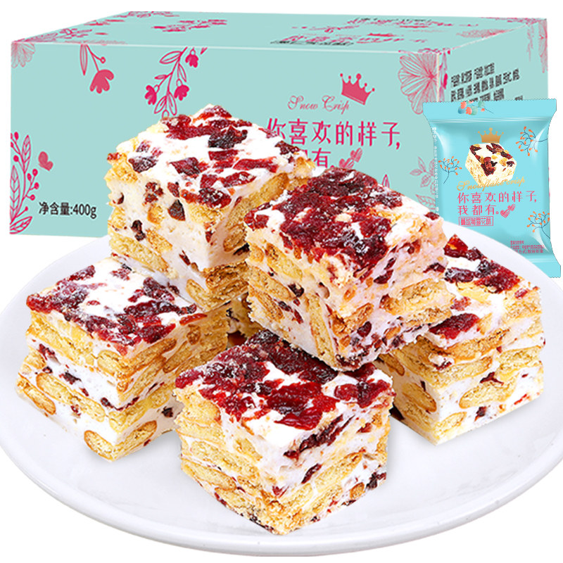 Cranberry flavor 800g, milk flavor 800g (about 142 pcs in 2 boxes, only 31 99) Milk flavor snowflake crisp 800g, same style 800g (about 140 pcs in 2 boxes in total)