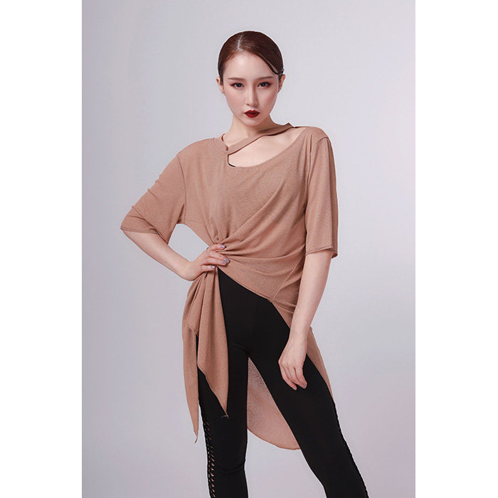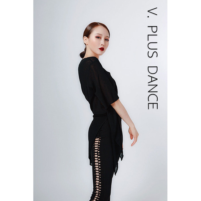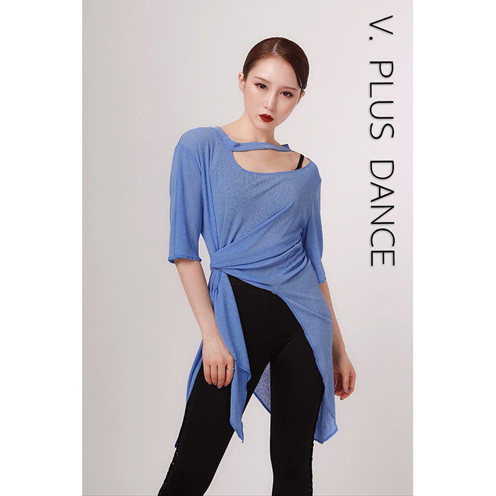 V.PLUS Gao Xue Crew neck irregular multi-wear french top Latin dancer practice suit