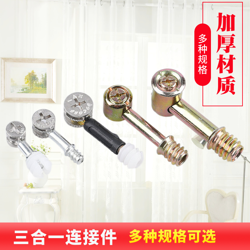 Furniture hardware assembly accessories three-in-one drawer connection piece two-in-one cabinet main part eccentric wheel screw