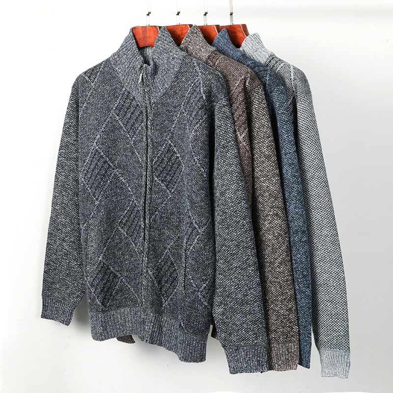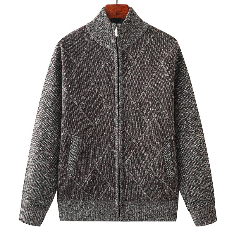 Middle-aged Plus Suede Thickening style cardiovert male daddy winter clothing Warm Blouse for older people Laced Sweater Grandpa Coat
