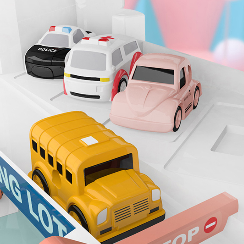 6 track cars (6 models) Sound and light storage parking garage(suitable for car building)