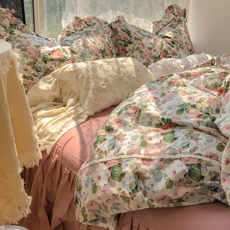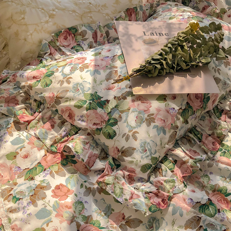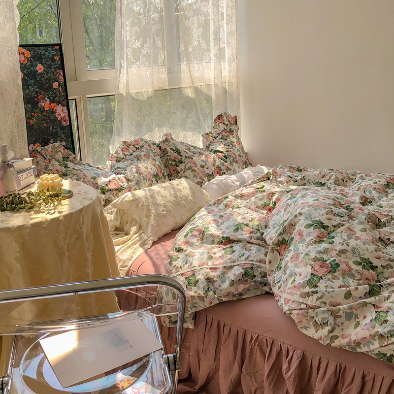 Ins blogger with ruffled princess style cotton four-piece set cotton quilt cover sheet bed 1.5 1.8 meters