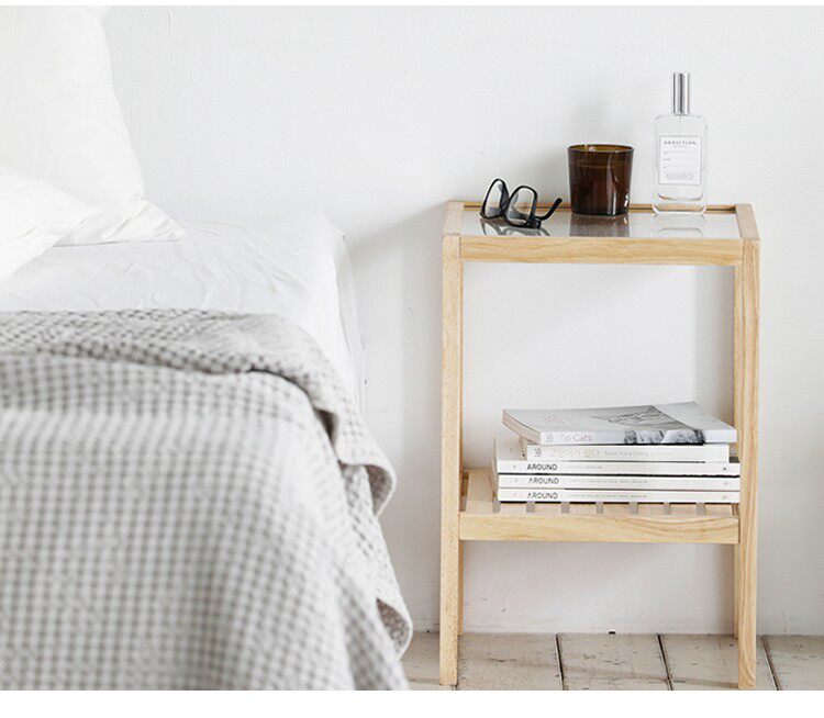 ins bedside table glass solid wood shelf bedside table bed and breakfast row skeleton house decoration simple storage rack