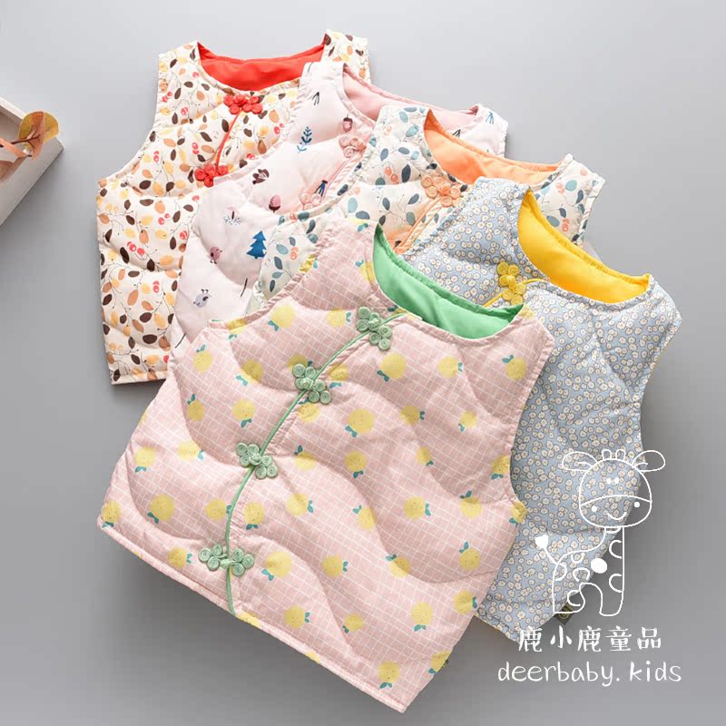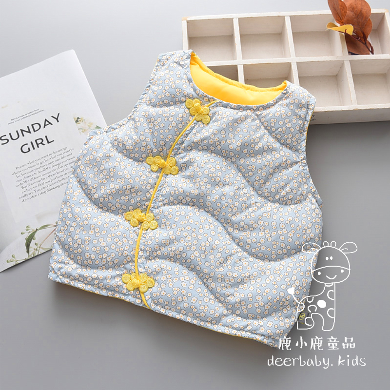 Girl's autumn and winter clothing light and thin down Neri female baby retro disc buckle waistcoat waistcoat Waistcoat Vest