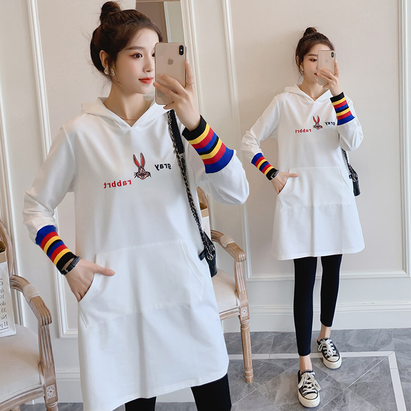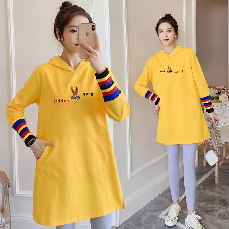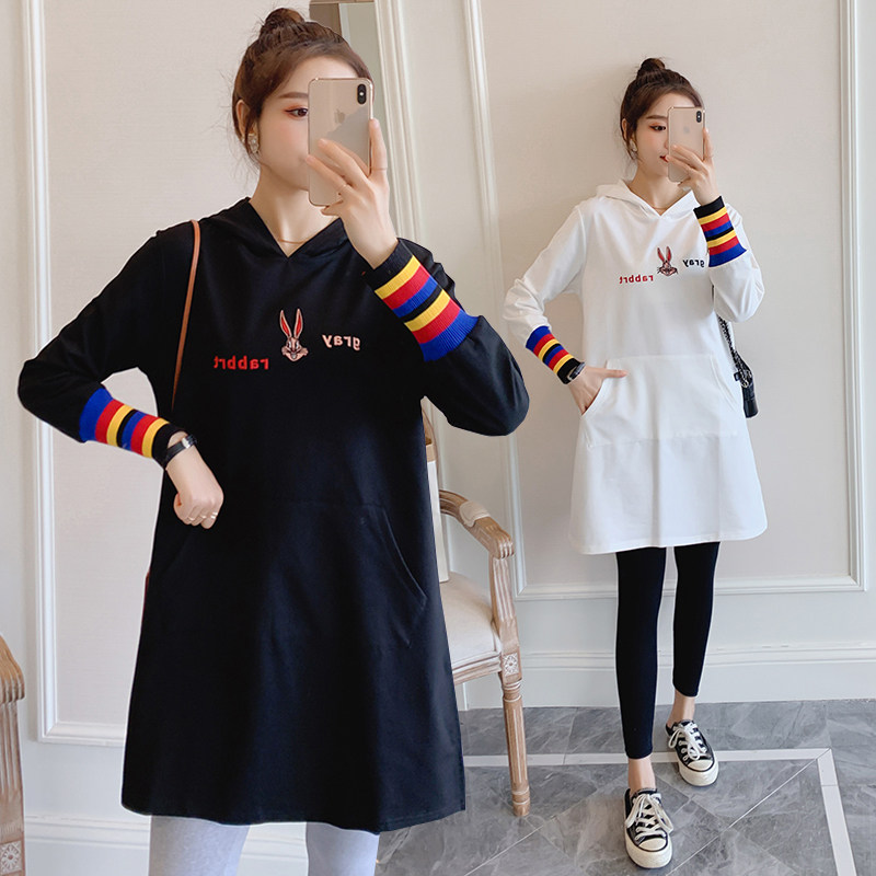 Pregnant Woman Spring Clothing Suit Fashion style Jacket Loose Medium Long Version Sweatshirt Long Sleeve Spring Autumn Tide Spicy Mother Personality Two Sets