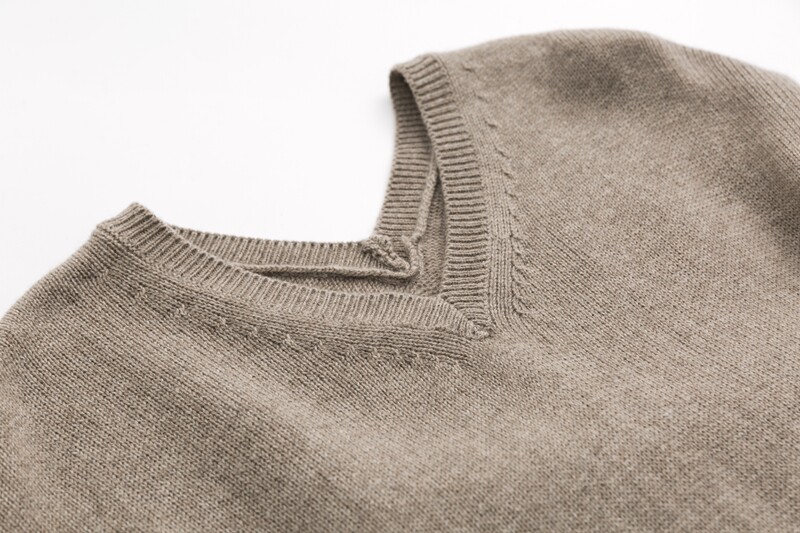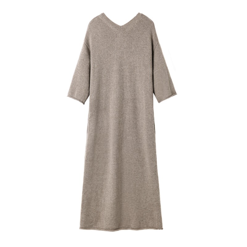 Fu Xianglin Double V Collar Middle Sleeve Lady Long Version Cashmere Dress 100% Mt. Cashmere V Collar Short Sleeve Head Cashmere Ocean Dress
