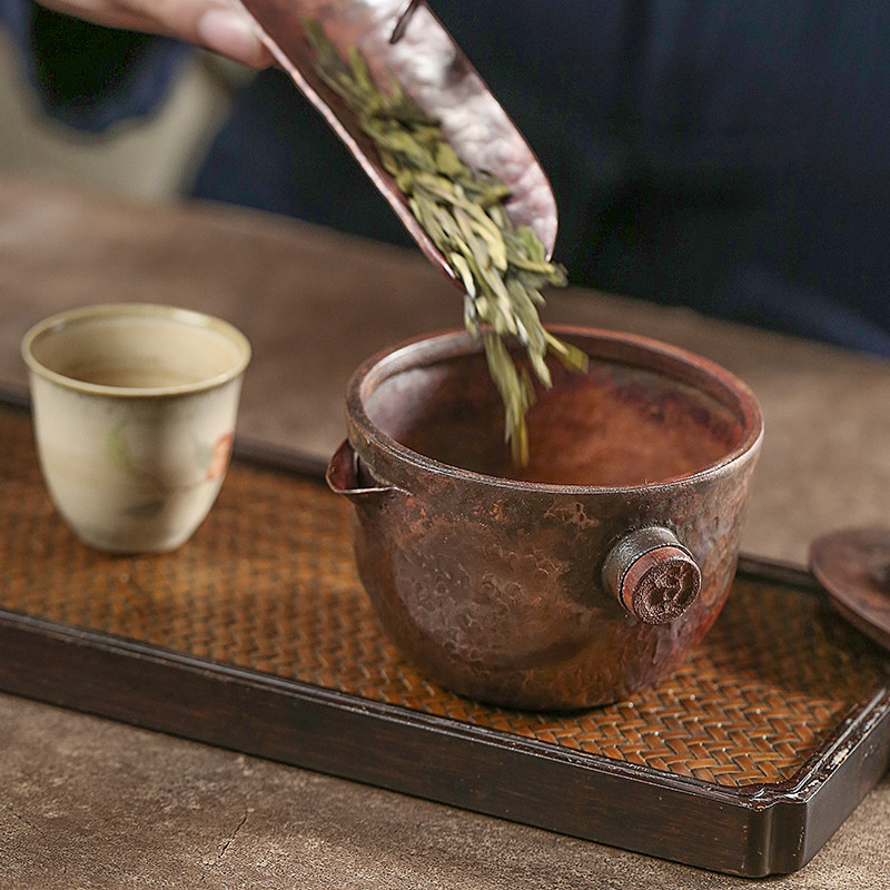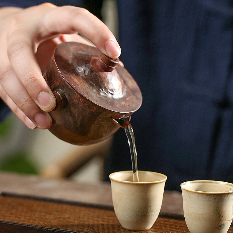 Fenggu Mountain Room pure hand-made bronze three-way cupboard retro-brew tea bowl household with small teapot Japanese hand grab tea set