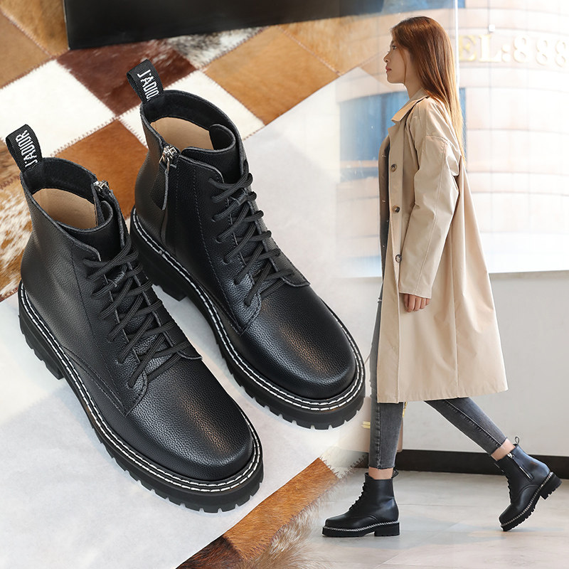 Martin boots women's short boots plus velvet inner heightened thick-soled women's shoes winter British style small size small size large size women's boots