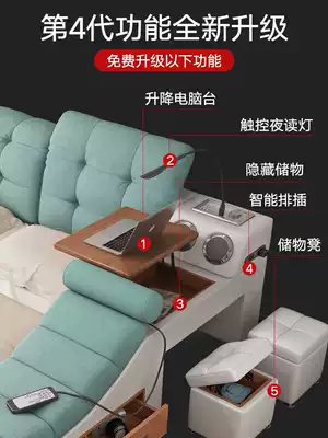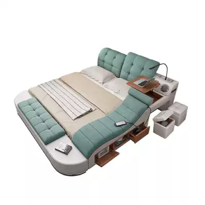 Multifunctional leather cloth bed master bedroom modern simple double bed 1 8 meters intelligent massage soft bed wedding bed Queen bed