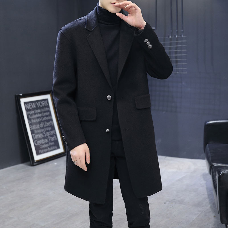 Upscale Double Face, the male Korean version trendy loose men's wind coat jacket with long version of the wool, and the great coat of wool.